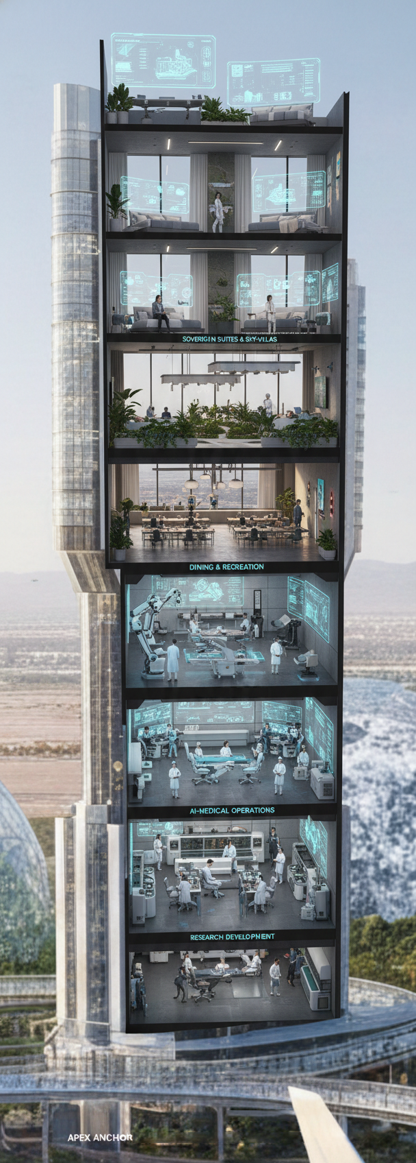 The centerpiece of Apex Las Vegas is a 60-story vertical medical campus housing the world's most sophisticated exotic animal hospital and research facility.